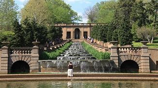 lawns, cascading fountains, and beautiful statues, providing the perfect